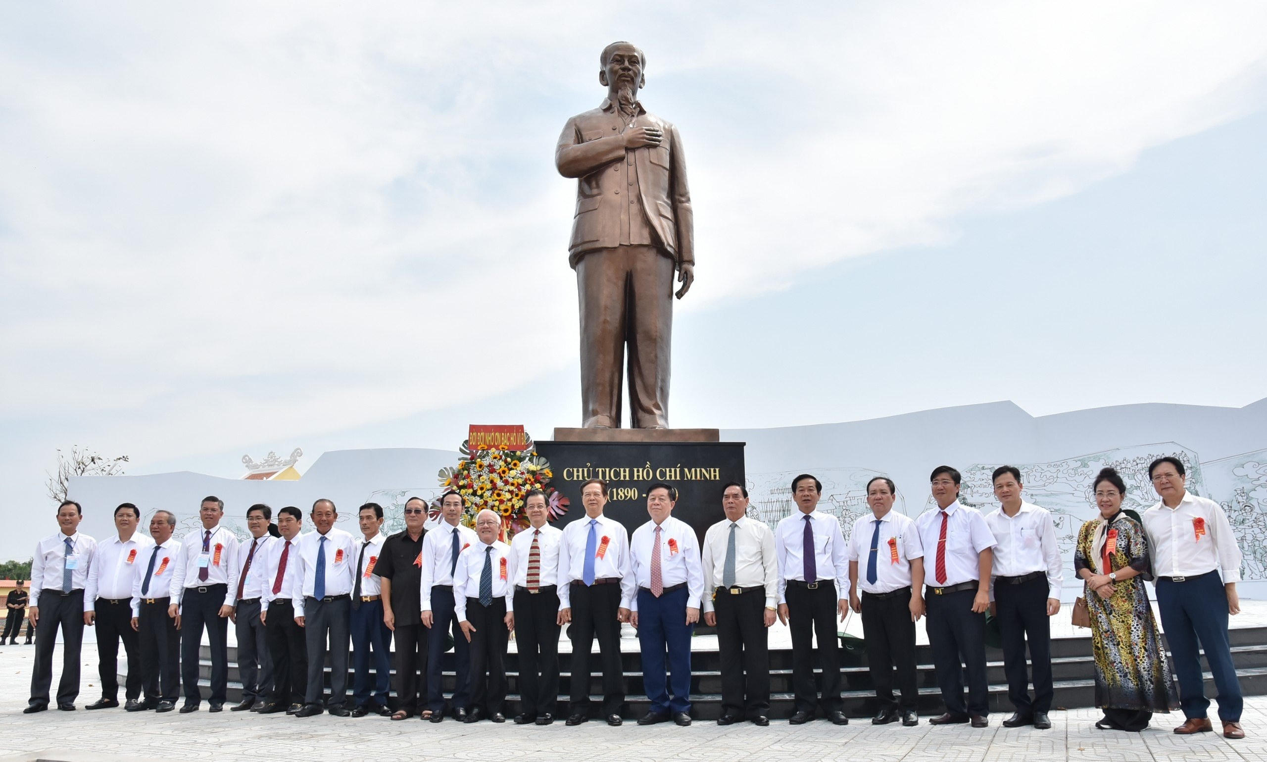 Lãnh đạo tỉnh Kiên Giang chụp ảnh bên bức tượng đồng Bác Hồ mang biểu tượng “Miền Nam trong trái tim tôi” - Ảnh: Khánh Thuỳ. |