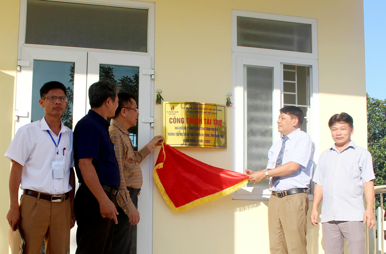 Ngày 10/11/2023, PV GAS đã phối hợp UBND xã Hà Thái, huyện Hà Trung, tỉnh Thanh Hóa đã tổ chức buổi lễ khánh thành công trình nhà hiệu bộ 2 tầng và các công trình phụ trợ Trường Tiểu học xã Hà Thái.