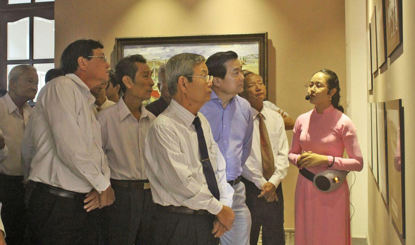 | Đại biểu tham quan Phòng trưng bày, tìm hiểu về thân thế, sự nghiệp Luật sư Nguyễn Hữu Thọ. Ảnh báo Long An |