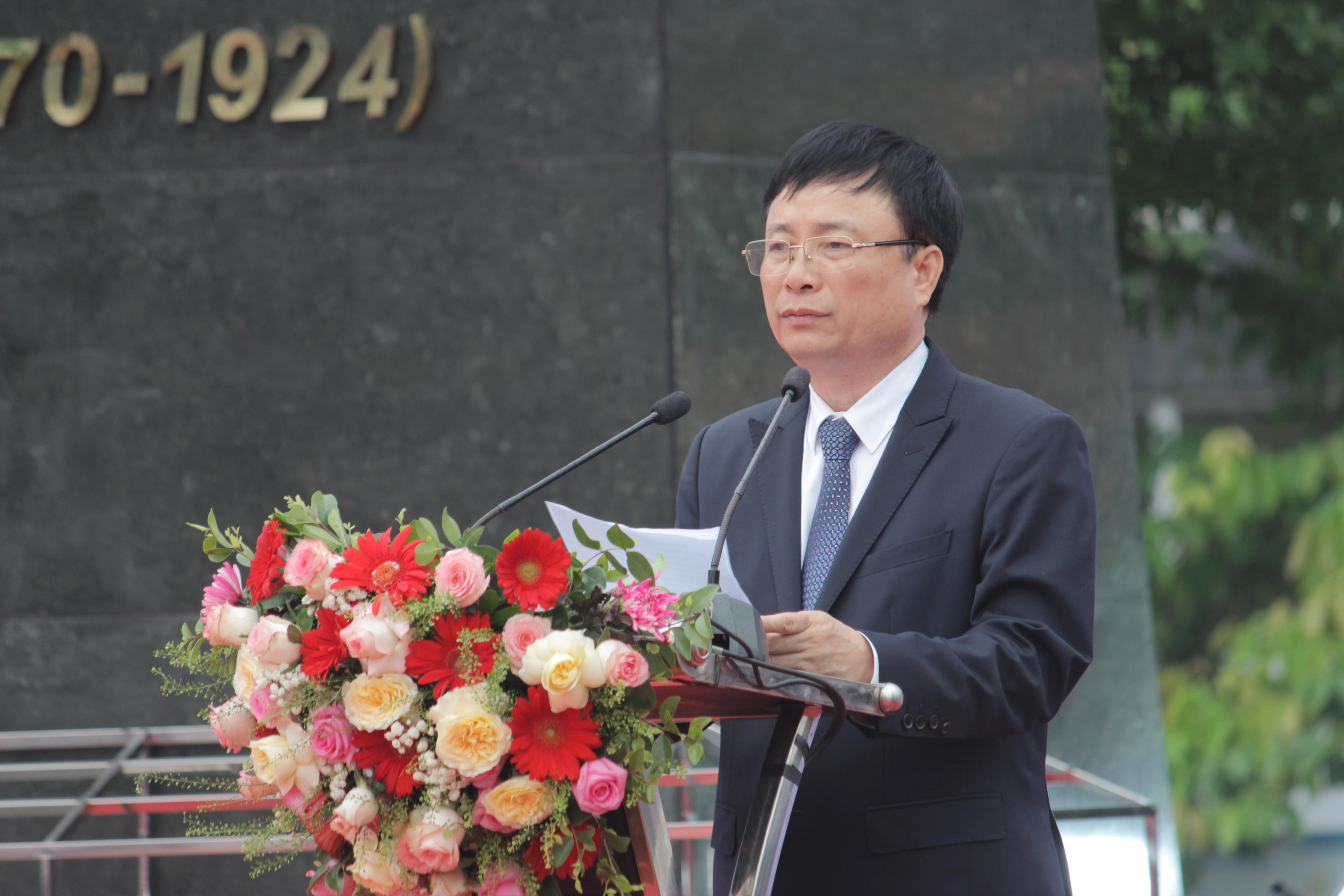 Ông Bùi Đình Long - Phó chủ tịch UBND tỉnh Nghệ An phát biểu tại Lễ khánh thành tượng đài V.l.Lênin. |
