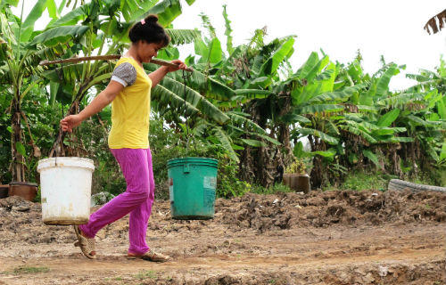 Ao đìa của nhà thì bị khô cạn nên giờ giặt đồ phải qua nhà kế bên xin nước dưới áo lên giặt. Giặt bằng nước tẩy nhưng đến khi quần áo khô cũng bị vàng vì ở đây nước nhiễm phèn lắm. Nước mưa tôi chứa đã hết, giờ phải đổi nước lọc uống”…