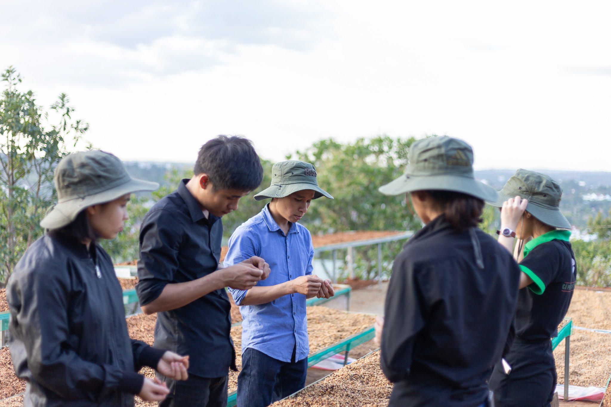 Đội ngũ Enjoy Coffee kiểm tra cà phê.