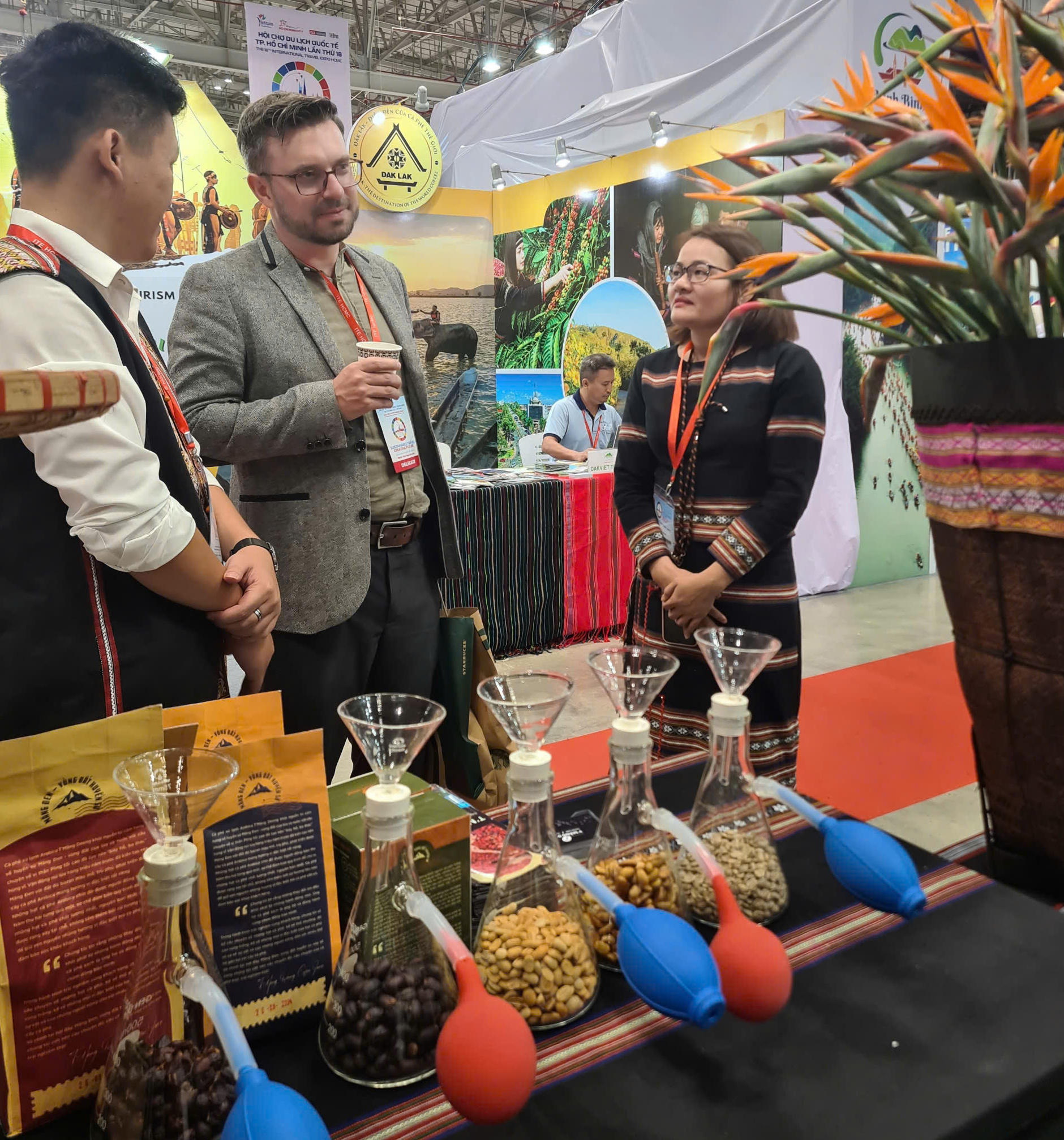 Tại Hội chợ ITE Hồ Chí Minh 2024, nhiều doanh nghiệp muốn hợp tác để xúc tiến xuất khẩu sản phẩm cà phê của T'Măng Deeng ra thị trường quốc tế. |
