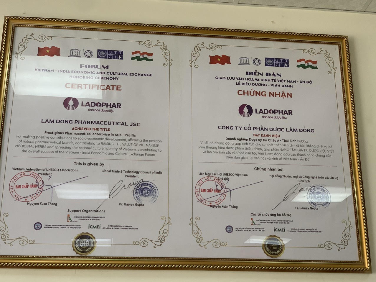 Công ty Ladophar đạt chứng nhận doanh nghiệp dược uy tín Châu Á - Thái Bình Dương. |