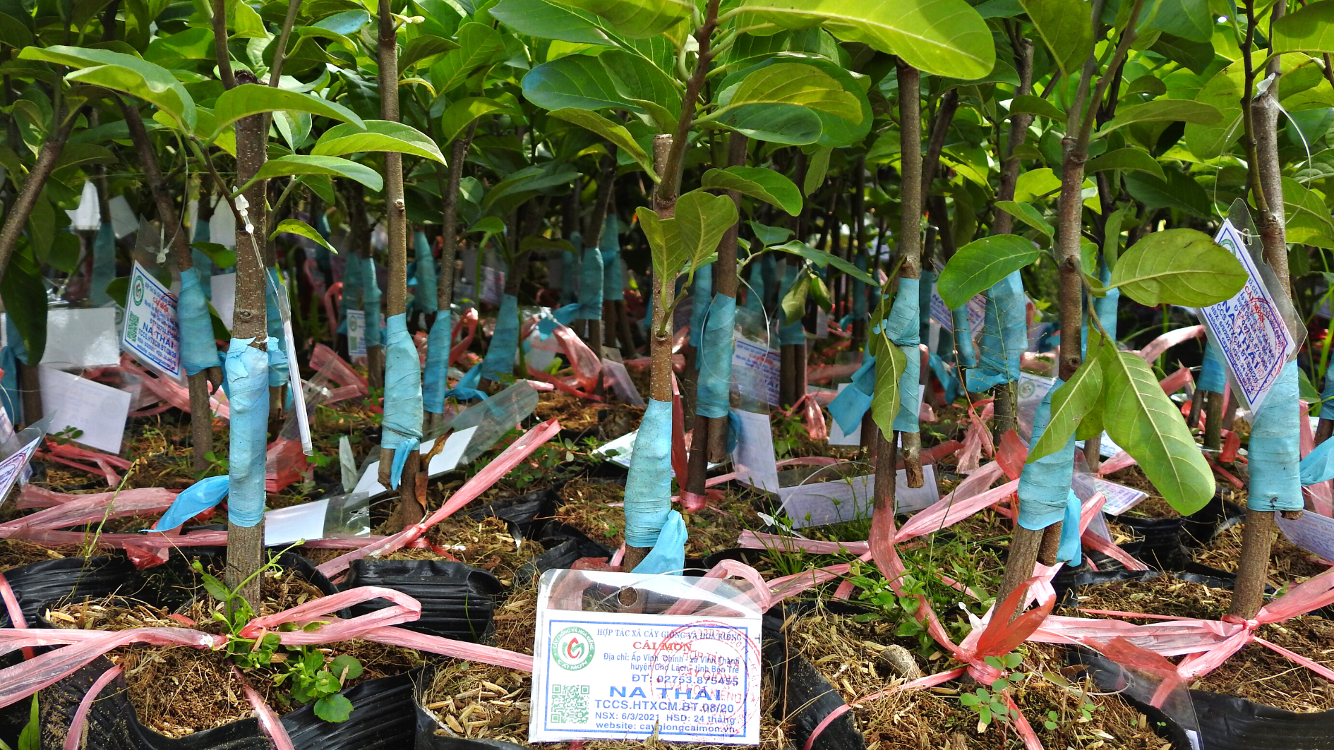 Cây giống Cái Mơn được gắn tem, logo trước khi xuất hàng, đảm bảo chất lượng, nguồn gốc |