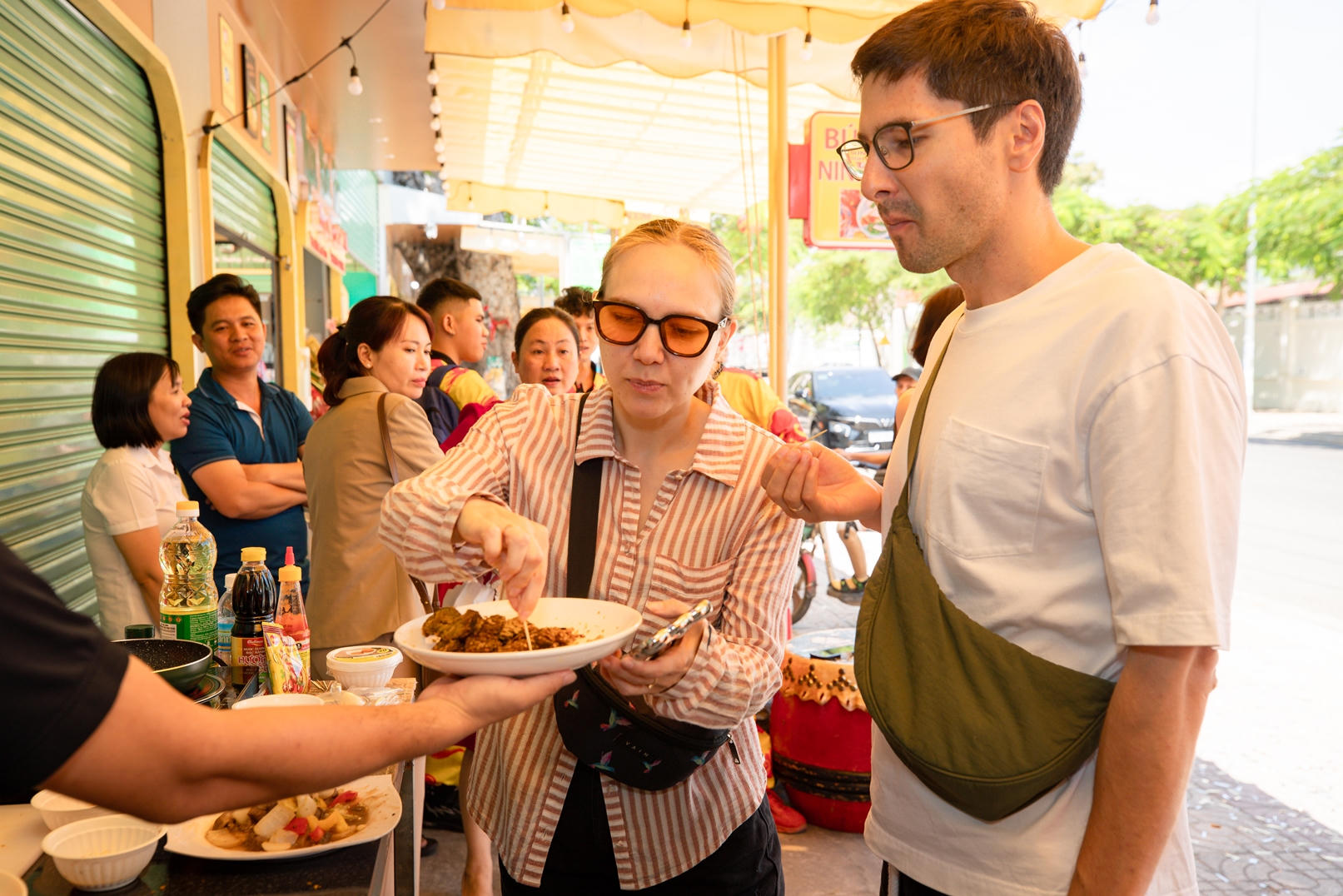 | Khách hàng thưởng thức món ăn được chế biến từ thịt đà điểu VietOstrich. |