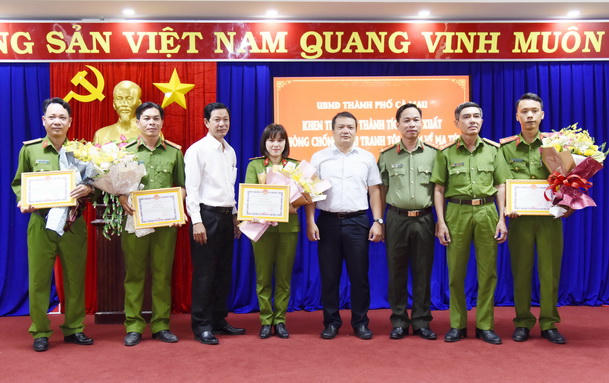 (PLVN) - Chiều nay (15/3), Chủ tịch UBND TP Cà Mau Lê Tuấn Hải quyết định khen thưởng đột xuất 01 tập thể và 03 cá nhân Đội CSĐTTP về ma túy có thành tích xuất sắc trong triệt phá vụ án ma túy, thu 1 kg ma túy đá và 1.000 viên thuốc lắc vào rạng sáng 10/3, tại phường 6, TP Cà Mau.