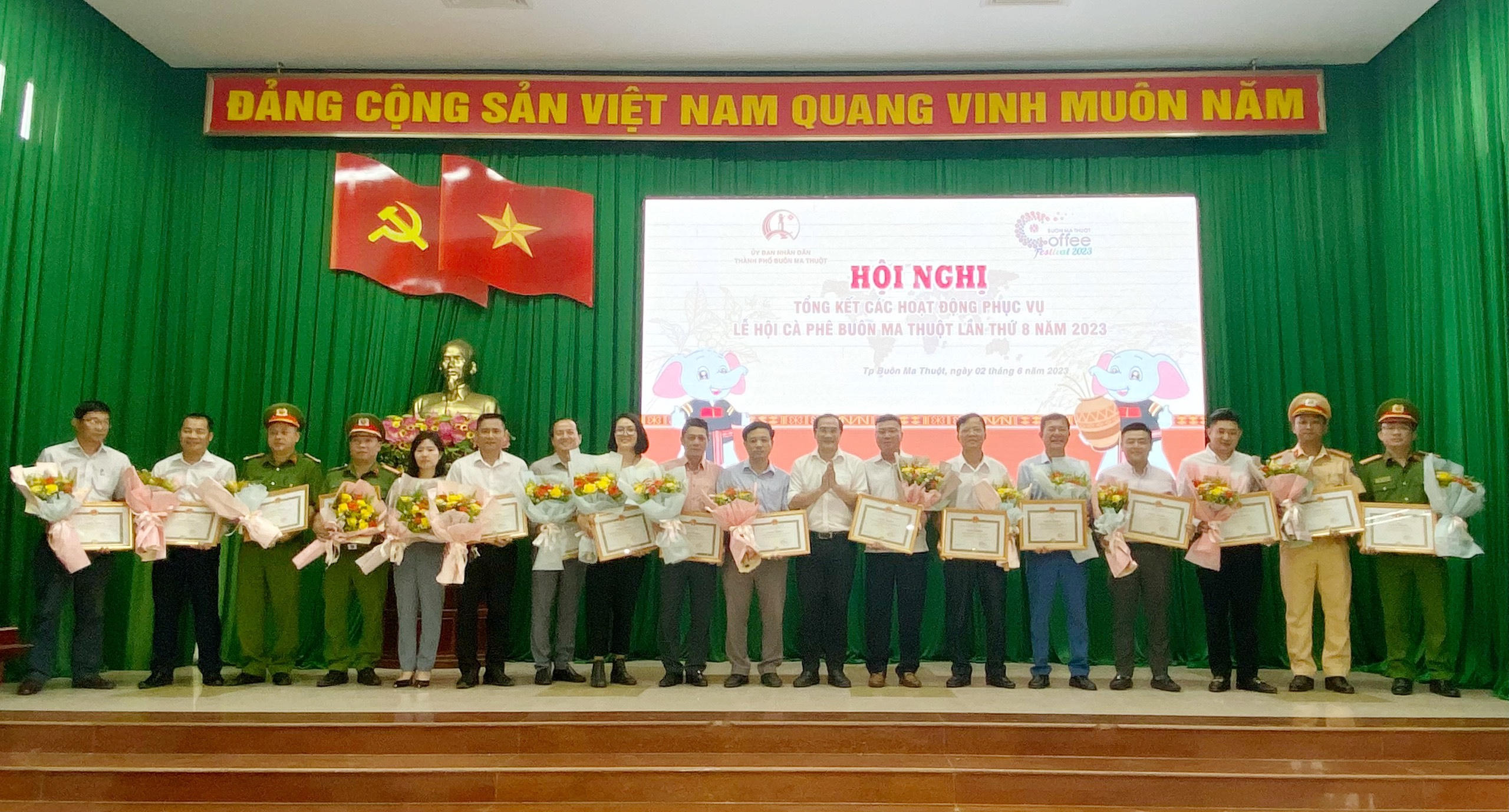 Tại Hội nghị, UBND TP Buôn Ma Thuột đã khen thưởng cho 73 tập thể, cá nhân đã có thành tích xuất sắc trong việc tổ chức các hoạt động hưởng ứng Lễ hội Cà phê Buôn Ma Thuột lần thứ 8 năm 2023.