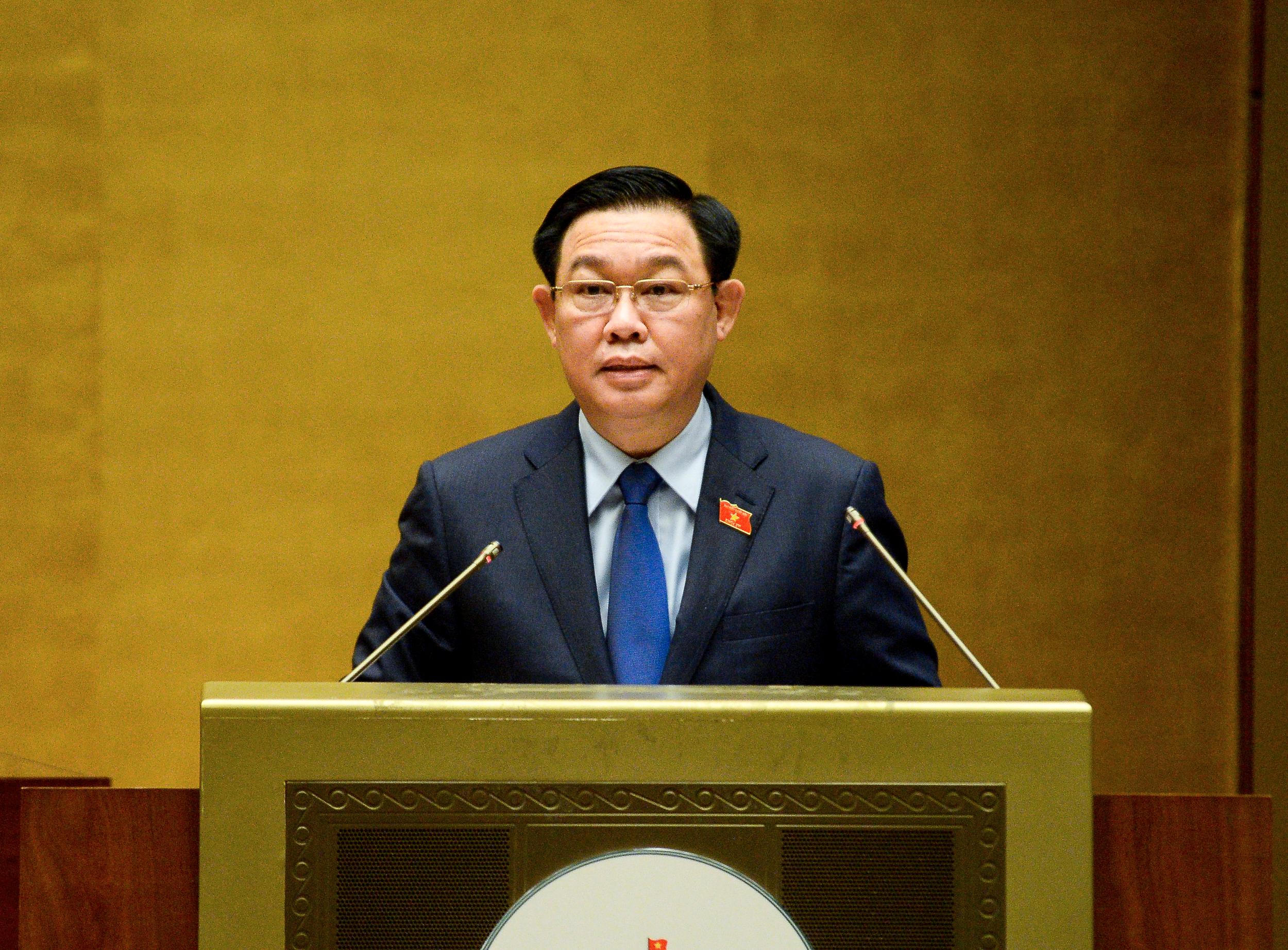 Chủ tịch Quốc hội Vương Đình Huệ phát biểu bế mạc Kỳ họp thứ nhất. |