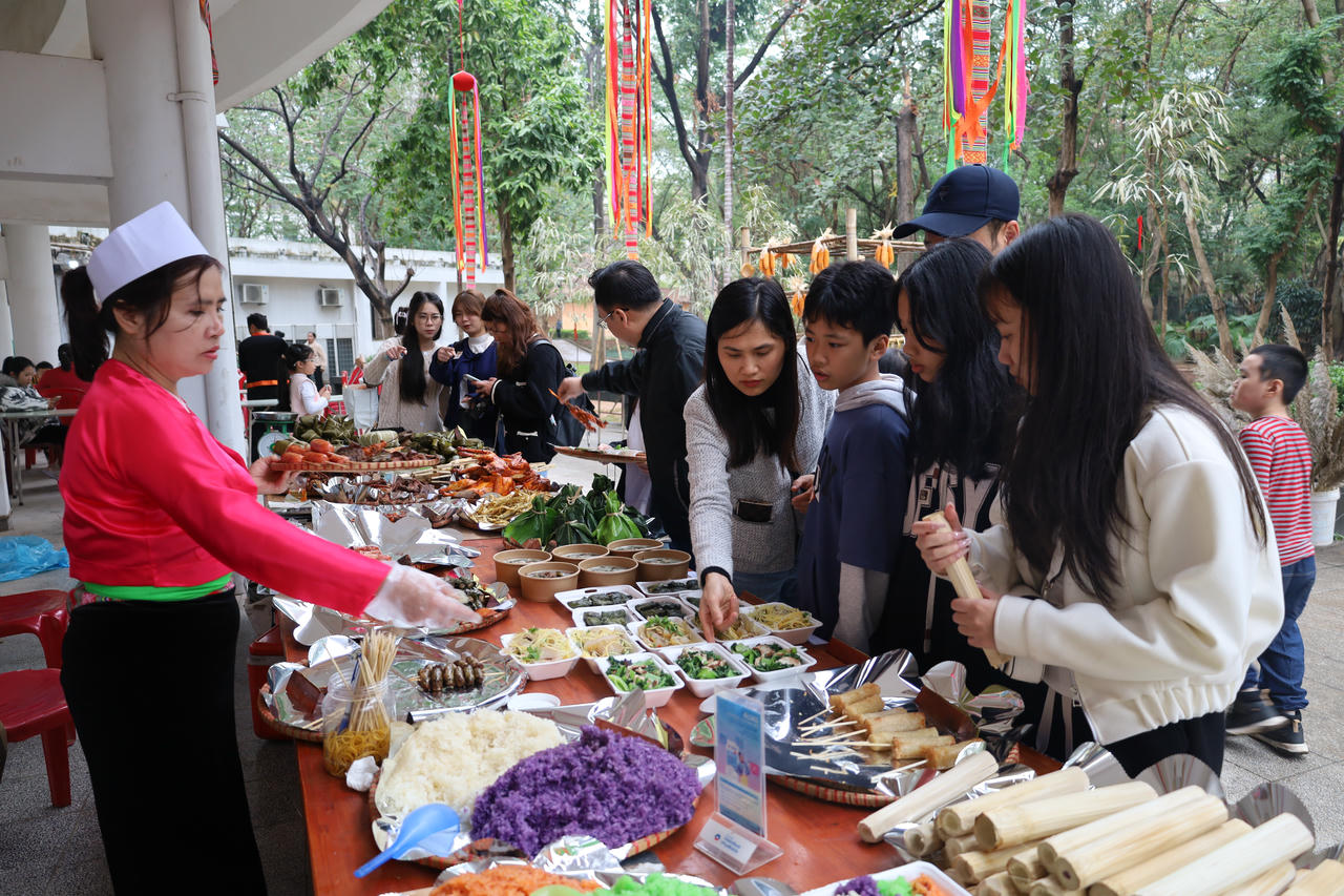 Các bạn trẻ hào hứng trải nghiệm ẩm thực của người Mường tại Bảo tàng Dân tộc học Việt Nam. Nguồn BTDTHVN |