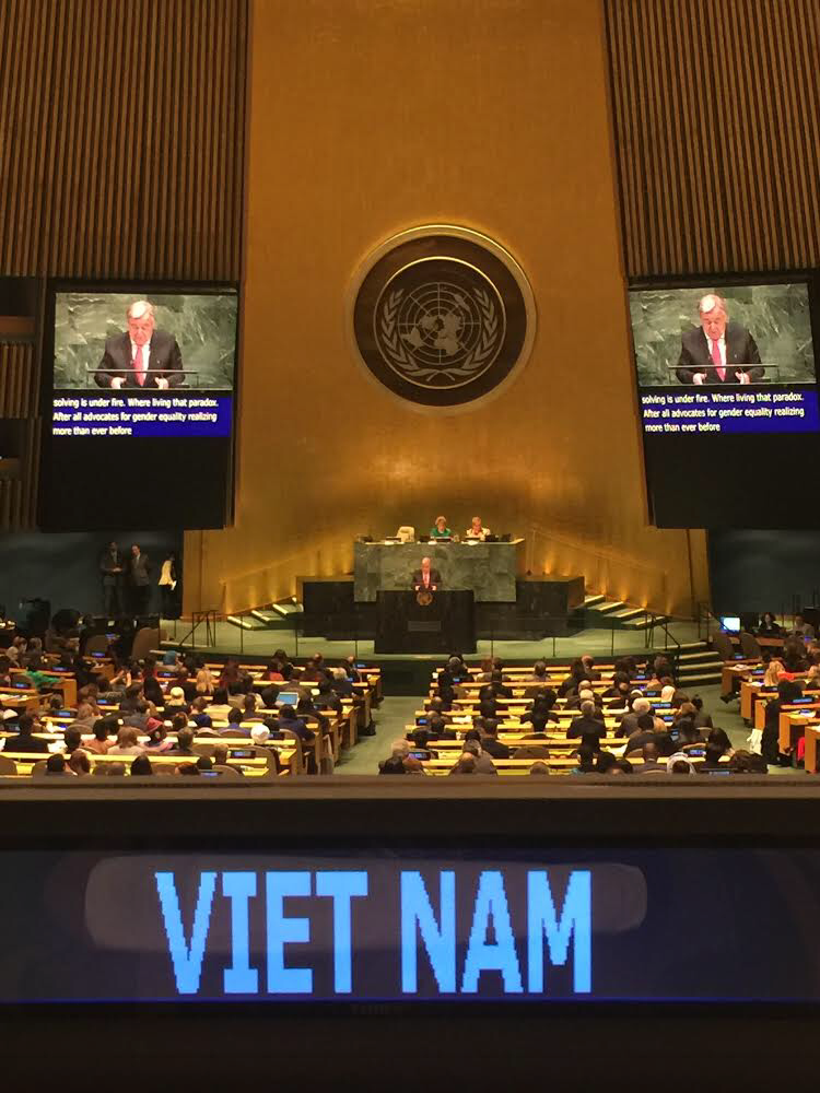 Đoàn đại biểu Việt Nam do Bộ trưởng Bộ Lao động - Thương binh và Xã hội Đào Ngọc Dung, Chủ tịch Ủy ban quốc gia Vì sự tiến bộ của Phụ nữ làm Trưởng đoàn, cùng đại diện Bộ Ngoại giao, Bộ Lao động - Thương binh và Xã hội, đại diện Phái đoàn Việt Nam tại Liên Hợp Quốc, tham dự phiên họp.