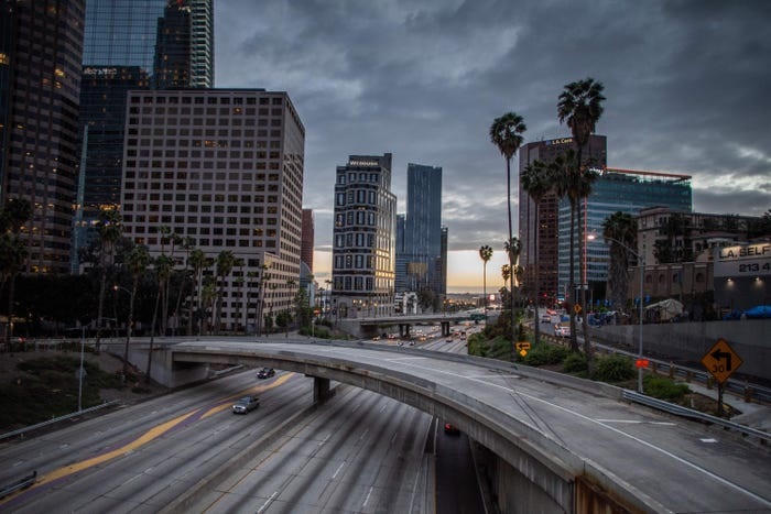 Vào Chủ nhật, hầu như không có bất kỳ chiếc xe nào trên Đường cao tốc 110 ở Los Angeles - một thành phố khét tiếng về giao thông đông đúc.