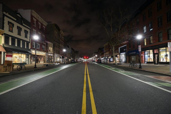 Không có một chiếc xe nào trong tầm ngắm trên Phố Washington ở Hoboken, New Jersey vào tối thứ Hai, sau khi thị trưởng thành phố ra lệnh cho tất cả các quán bar và nhà hàng chuyển đổi bán mang đi và chỉ giao hàng.