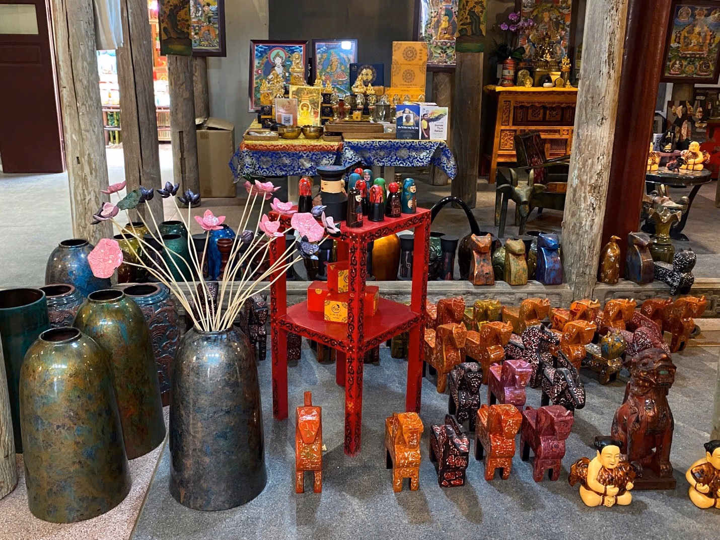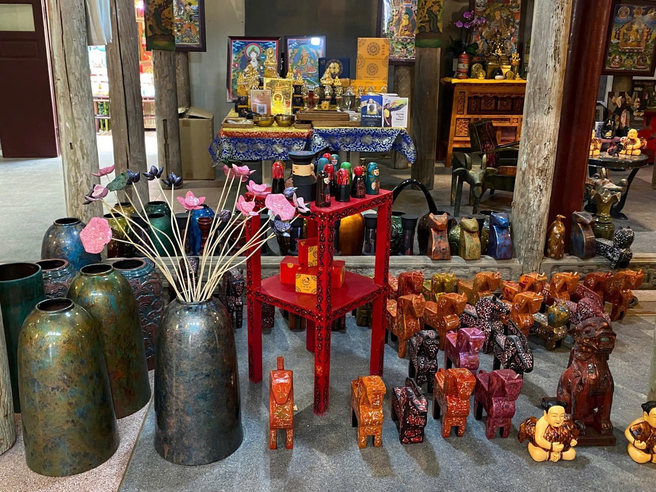 Không dừng lại ở tranh vẽ hay chữ viết, hành trình khám phá di sản tại số 22 Hàng Buồm còn dẫn lối du khách đến với thế giới của những vật phẩm thủ công mỹ nghệ - nơi vàng son của các làng nghề truyền thống được tái hiện rực rỡ như di sản mỹ nghệ sừng hay các bức tượng sơn mài.