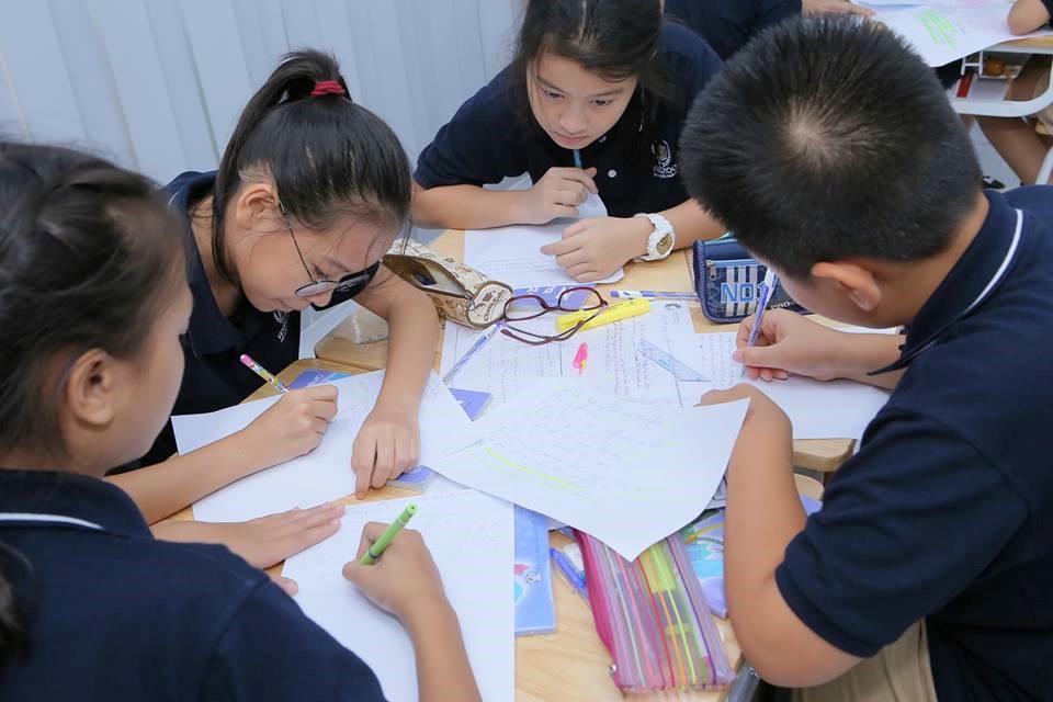 Ở bậc Trung học, các em được trao quyền để sớm hình thành các kỹ năng phức tạp hơn, trong đó có các kỹ năng cốt lõi là kỹ năng tự học, kỹ năng giải quyết vấn đề và quản lý thời gian. Ảnh: học sinh lớp 6A7 của thầy Trực đang cùng làm việc nhóm để hoàn thành dự án của mình.