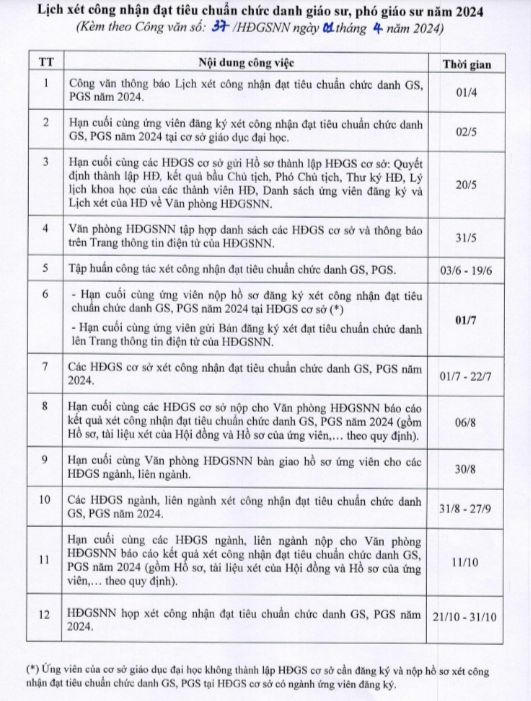 Lịch cụ thể công nhận đạt tiêu chuẩn chức danh GS, PGS năm 2024. |
