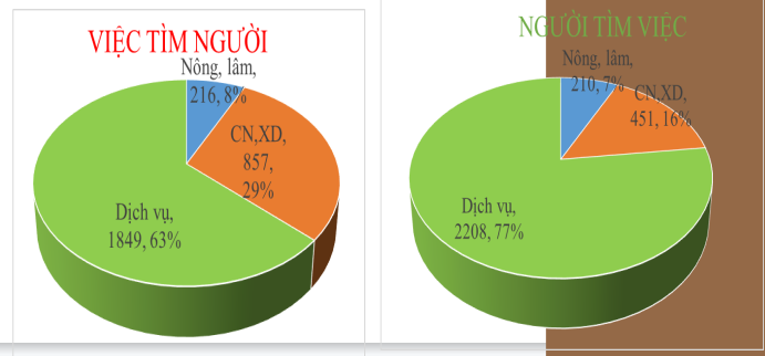Còn nếu phân chia theo nhóm ngành nghề, dịch vụ vẫn là khu vực sôi động, chiếm đa số nhu cầu tuyển dụng cũng như nguồn cung của thị trường lao động. Nhóm ngành nghề công nghiệp xây dựng có nhu cầu tuyển dụng giảm mạnh so với mọi năm.