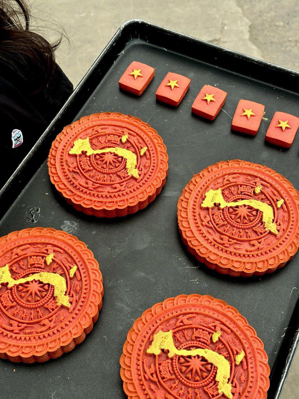 Những chiếc bánh nhỏ với tạo hình độc đáo thể hiện lòng tự hào dân tộc, tình yêu quê hương đất nước. (Ảnh: FB nhân vật) |