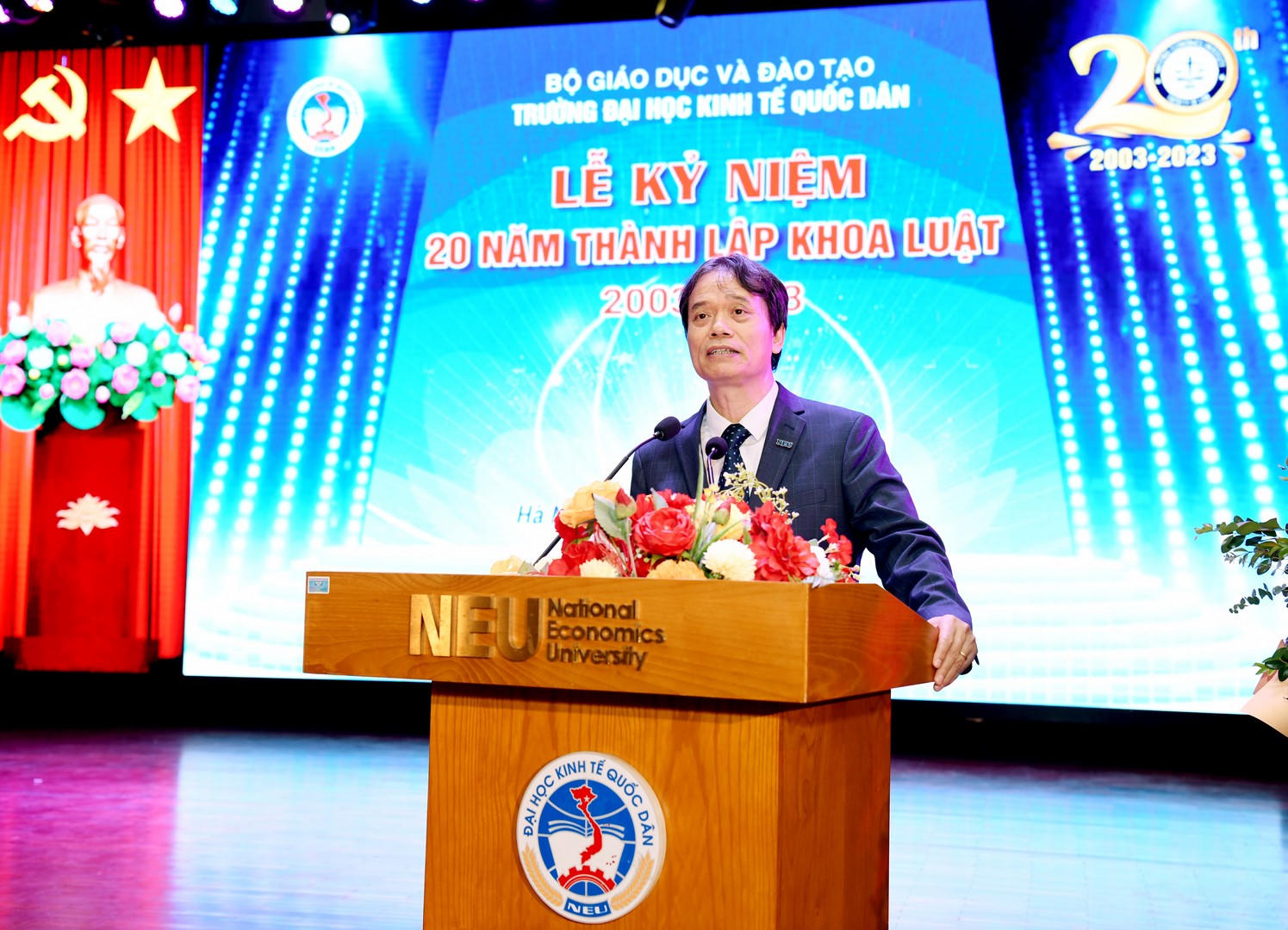 Phát biểu tại buổi lễ, GS.TS Phạm Hồng Chương - Hiệu trưởng Trường ĐHKTQD cho biết, qua 20 năm xây dựng và phát triển, Khoa Luật đã lớn mạnh về mọi phương diện.