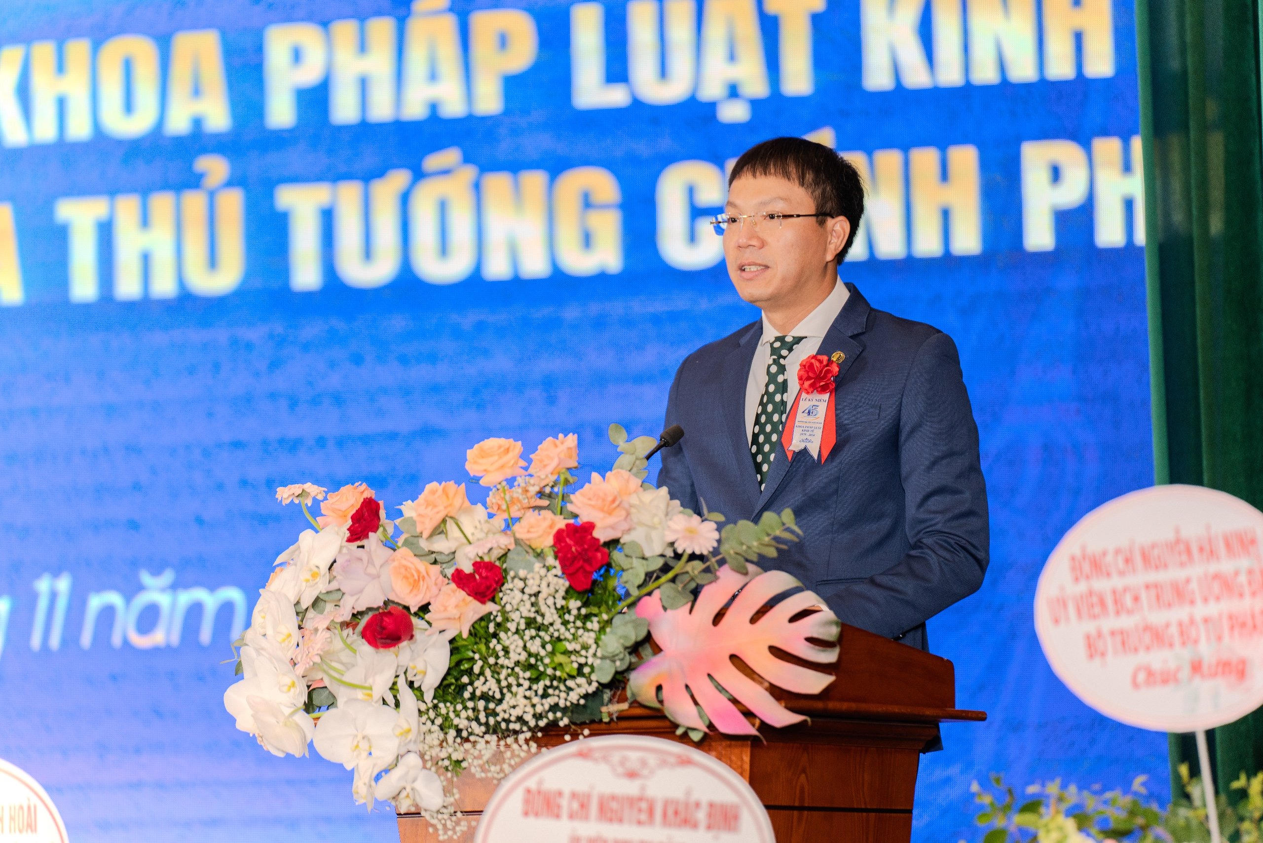 Phát biểu tại buổi lễ, Thứ trưởng Đặng Hoàng Oanh mong muốn Trường Đại học Luật Hà Nội và Khoa Pháp luật Kinh tế tiếp tục kế thừa, phát huy truyền thống vẻ vang, những thành tựu đạt được cùng Bộ, ngành Tư pháp chủ động phát hiện và tháo gỡ nhanh nhất những “điểm nghẽn” có nguyên nhân từ các quy định của pháp luật, trong đó chú trọng vào một số lĩnh vực là thế mạnh của Trường, của Khoa Pháp luật kinh tế cần ưu tiên tập trung phát triển trong lĩnh vực pháp luật kinh tế.