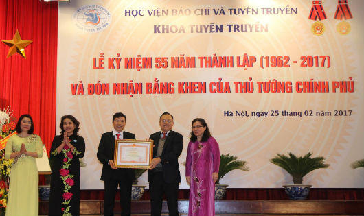 (PLO) - Ngày 25/2, Khoa Tuyên truyền, Học viện Báo chí và Tuyên truyền đã long trọng tổ chức Lễ kỷ niệm 55 năm Ngày thành lập (16/1/1962 – 16/1/2017) và đón nhận bằng khen của Thủ tướng Chính phủ.