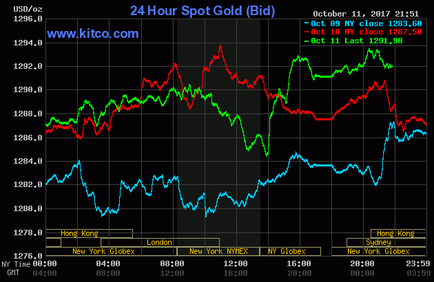 Ở thời điểm cập nhật lúc 7h00 sáng theo giờ Việt Nam, giá vàng giao ngay đang ở mức 1.292,10 USD/ounce, tăng so với mức chốt phiên hôm thứ Ba là 1.287,50 USD/ounce.