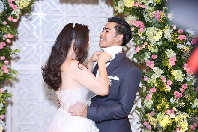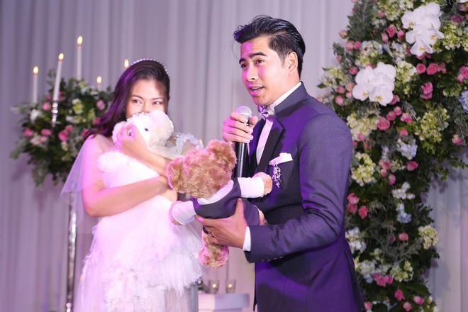 Chú rể Thanh Bình tâm sự: "Hôm nay, có rất nhiều người quan trọng trong cuộc đời anh đã chứng kiến phút giây này, nhưng vẫn thiếu một người (người mẹ đã mất của Thanh Bình). Nếu người đó biết được anh đã lấy em, anh nghĩ rằng người đó rất vui, hạnh phúc. Cuối cùng, anh muốn nói rằng từ ngày hôm nay, em đã trở thành một phần rất quan trọng với anh".