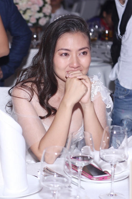 Khi nam diễn viên ngỏ lời: "Kể từ ngày hôm nay, em có đồng ý làm vợ em không?", Ngọc Lan đã xúc động khóc và không nói nên lời. Sau khi lau nước mắt, cô mới đáp lại: "Em có" khiến cả phòng tiệc rộ lên những tràng vỗ tay chúc mừng. Ảnh: Ngôi sao.