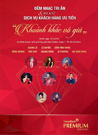 Với sự đầu tư công phu cùng ekip sản xuất hàng đầu Việt Nam, đêm nhạc tri ân chủ đề “Khoảnh khắc vô giá” không chỉ là một trong những đặc quyền khách hàng được tận hưởng khi sử dụng và trải nghiệm dịch vụ VietinBank Premium Banking mà còn là cam kết của VietinBank nhằm mang đến cho các khách hàng ưu tiên những giá trị khác biệt, tinh tế và đẳng cấp…