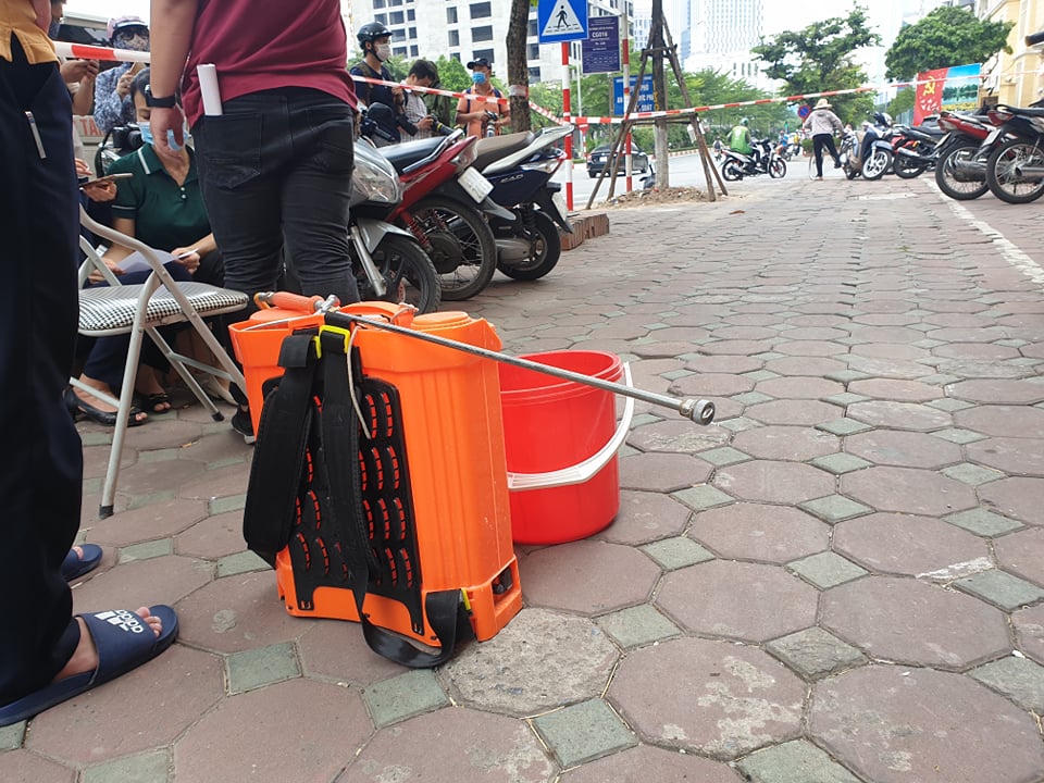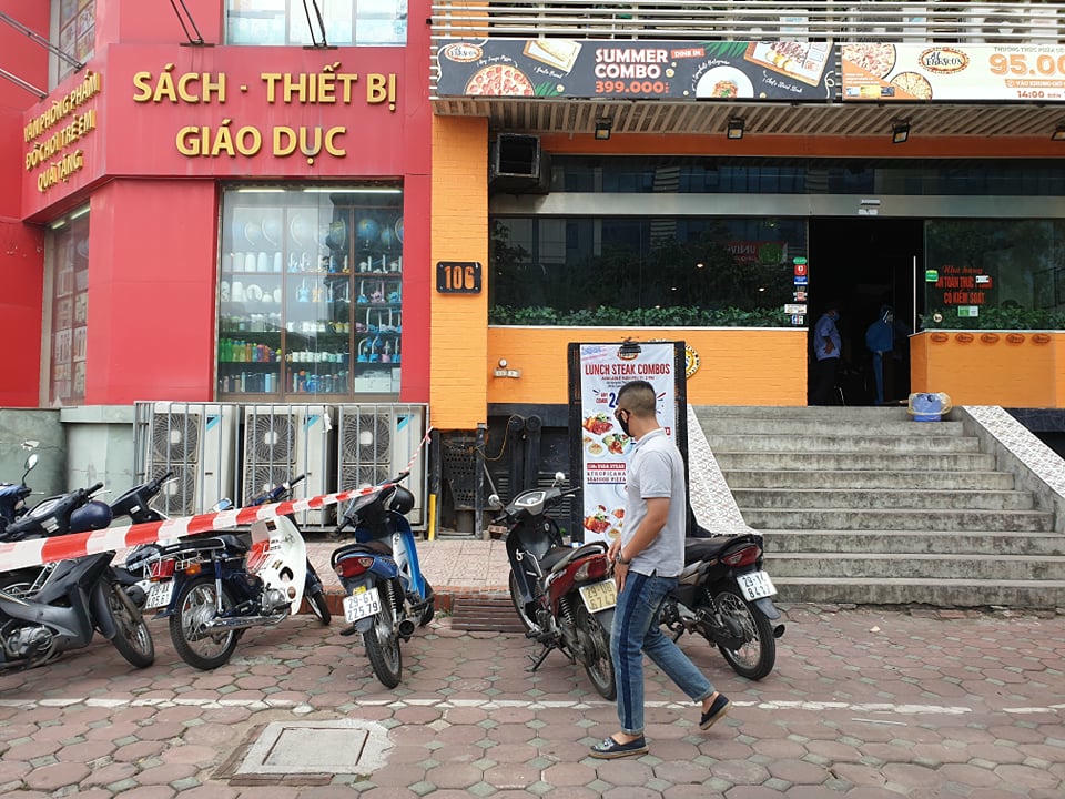 (PLVN) - Lực lượng chức năng quận Cầu Giấy sáng nay căng dây khoanh vùng Cửa hàng Pizza - Pasta ở 106 Trần Thái Tông. Nhân viên y tế đã phun khử khuẩn khu vực này...