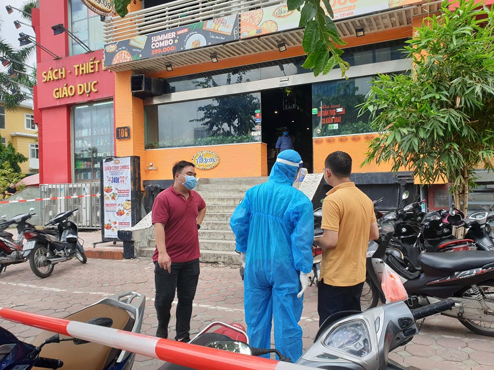 Thông tin ban đầu, người nghi nhiễm covid -1 9 là nam nhân viên phục vụ tại cửa hàng (23 tuổi), đi du lịch cùng gia đình tại Đà Nẵng từ ngày 12/7 đến ngày 15/7. Ngày 23/7, anh này sốt nhẹ kèm ho có đờm đặc. Ngày 28/7, anh đến khám tại Bệnh viện Bệnh Nhiệt đới Trung ương và được hướng dẫn nhập viện cách ly. Kết quả xét nghiệm lần 1 cho thấy nam nhân viên dương tính với SARS-CoV-2.