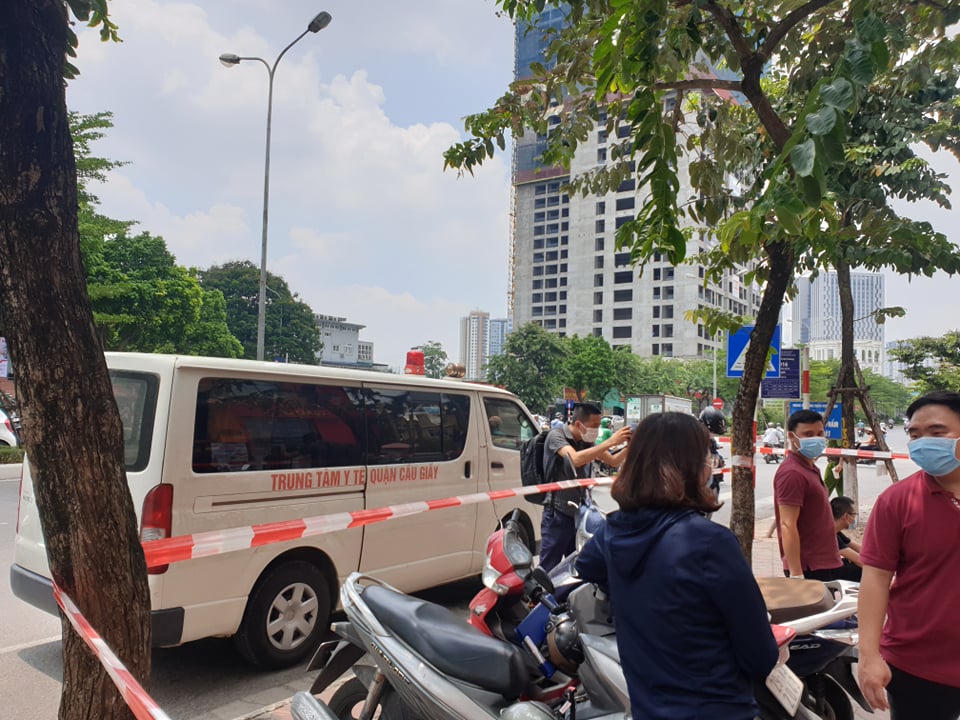 Khoanh vùng cửa hàng có ca nghi nhiễm Covid-19 ở Cầu Giấy (Hà Nội)