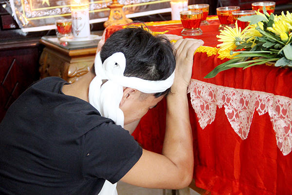 Cạnh quan tài của mẹ, anh Trần Đình Kỷ (con trai bà Hoa) kêu khóc thống thiết gọi mẹ, liên tục đụng đầu vào quan tài khiến cho bao người không thể cầm nước mắt. “Mẹ ơi, răng (sao) mẹ bỏ con, bỏ bố mà đi. Mới sáng qua, mẹ còn nói sẽ đưa nước lên cho con uống để lấy sức chữa cháy rừng. Răng mẹ lại bỏ con mà đi, mẹ ơi”, người con trai nghẹn ngào. Ban thờ bà Hoa được lập vội, còn người chồng là ông Trần Đình Niệm đau đớn không nói được thành lời.