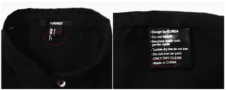 Chị My Lan, 24 tuổi, hiện là một nhân viên văn phòng tại Hà Nội phản ánh: “Không tin tưởng quần áo Trung Quốc, từ lâu mình chuyển sang dùng hàng Việt Nam, thường là VNXK của các hãng như Mango, Zara, Forever 21...”. Tuy nhiên, gần đây chị phát hiện nhiều chiếc áo, váy mua về nhà có hiện tượng mác gắn ở cổ áo bị cắt một nửa. Lật tìm trong thân áo chị mới bất ngờ phát hiện có dòng chữ “Made in China” in chìm trên mác.
