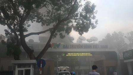 Một số người chứng kiến cho biết, khoảng thời gian trên, một cột khói cao nghi ngút bốc lên ngay phía sau cổng VTV, bao trùm khắp đường đi vào cổng VTV.