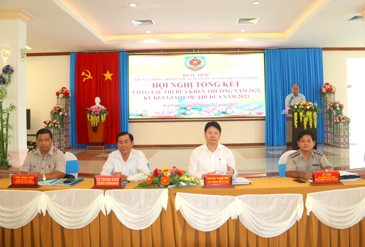 Báo cáo tại Hội nghị, ông Lâm Sáng Tươi – Giám đốc Sở Tư pháp tỉnh Trà Vinh, Trưởng Khu vực thi đua cho biết, năm 2022 với sự quan tâm lãnh, chỉ đạo của Chính phủ, Bộ Tư pháp, Tỉnh ủy, UBND các tỉnh, cùng quyết tâm, nỗ lực phấn đấu của lãnh đạo, tập thể và cá nhân trong Sở Tư pháp, Cục THADS các địa phương đã giúp các đơn vị hoàn thành xuất sắc chỉ tiêu thi đua đề ra.