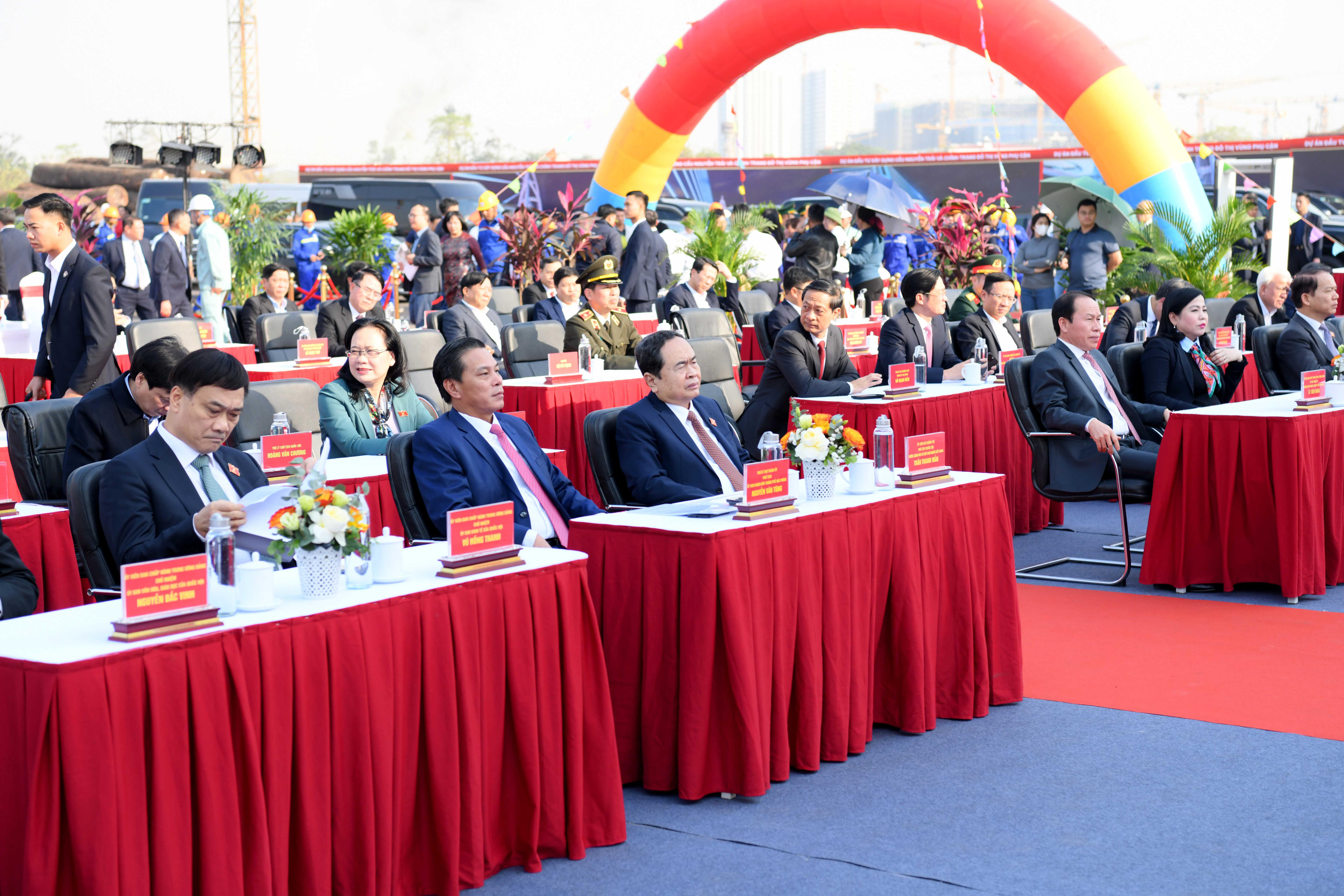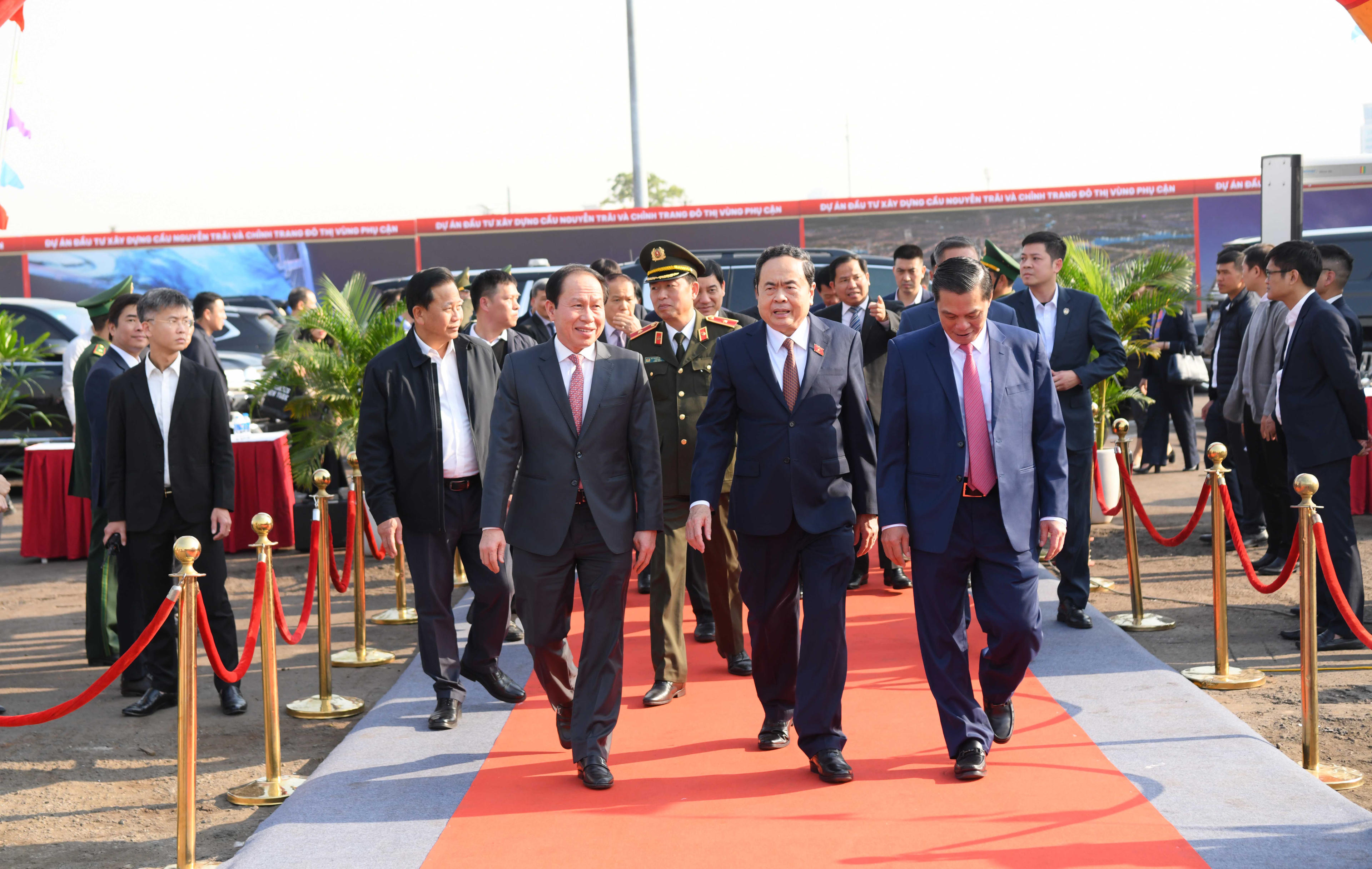 Chủ tịch Quốc hội Trần Thanh Mẫn và các đại biểu dự lễ khởi công Dự án đầu tư xây dựng cầu Nguyễn Trãi và chỉnh trang đô thị vùng phụ cận. |