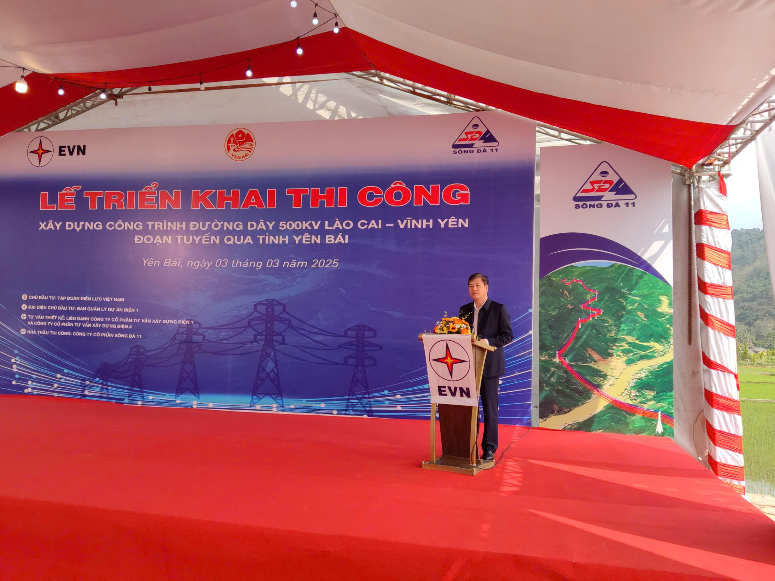 (PLVN) - Ngày 03/3/2025 tại Yên Bái, Tập đoàn Điện lực Việt Nam (EVN), Ban Quản lý dự án Điện 1 tổ chức Lễ triển khai thi công công trình đường dây 500KV Lào Cai – Vĩnh Yên, đoạn tuyến qua địa phận tỉnh Yên Bái.