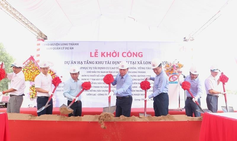 Quyền Chủ tịch UBND tỉnh Võ Tấn Đức và các đại biểu thực hiện nghi thức khởi công xây dựng khu tái định cư Long Phước |
