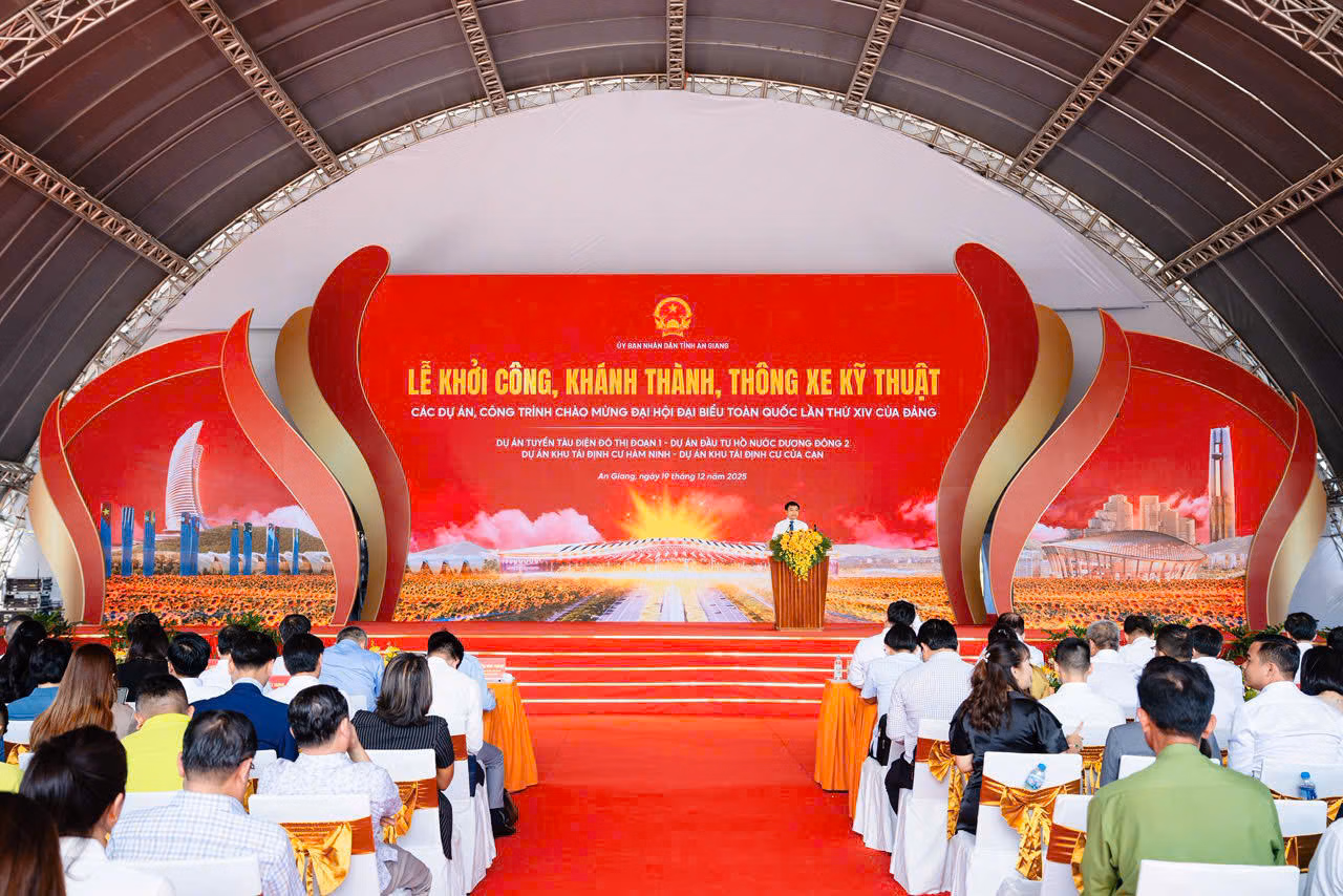 4 dự án trọng điểm được tỉnh An Giang khởi công, khánh thành gồm: Thứ nhất, dự án Tuyến tàu điện đô thị đoạn 1, có chiều dài tuyến khoảng 17,7 km, với tổng mức đầu tư khoảng 9.000 tỷ đồng, góp phần từng bước hình thành hệ thống giao thông công cộng hiện đại, thuận lợi, giảm áp lực giao thông và bảo vệ môi trường đô thị Phú Quốc.