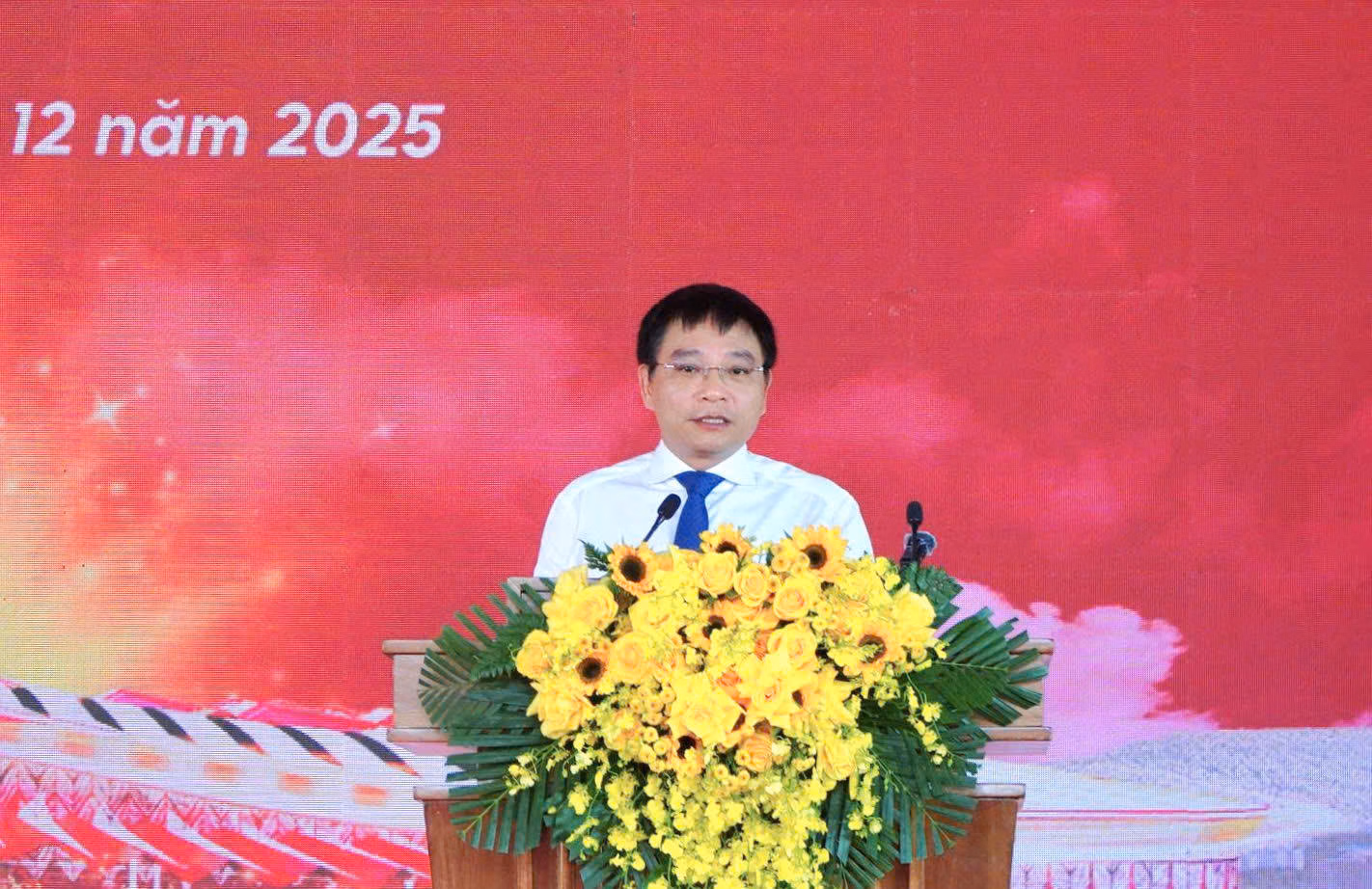 Bộ trưởng Bộ Tài chính Nguyễn Văn Thắng phát biểu tại lễ khởi công, khánh thành sáng 19/12 (Ảnh: Khánh Thùy).
