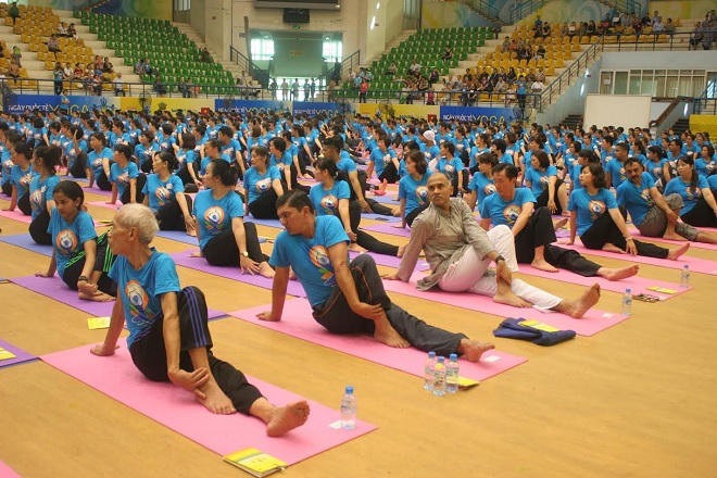 Ngày 26/6, Ngày Quốc tế Yoga tại Hà Nội diễn ra tại Cung thể thao Quần ngựa đã thu hút hơn 900 người tham gia đồng diễn Yoga và 3.000 người quan tâm theo dõi. Sự kiện diễn ra trong 2 tiếng từ 7h30 đến 9h30 trong sự hứng khởi của toàn bộ những người tham dự.