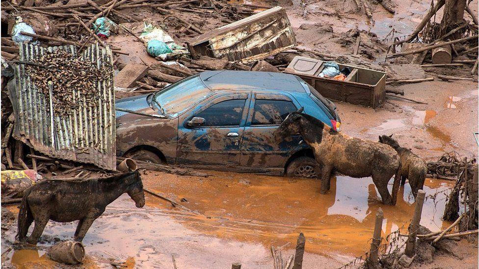 Hàng tấn bùn độc hại từ vụ vỡ đập ở Brumadinho đã nuốt chửng nhà cửa và đường xá ở hạ lưu. |