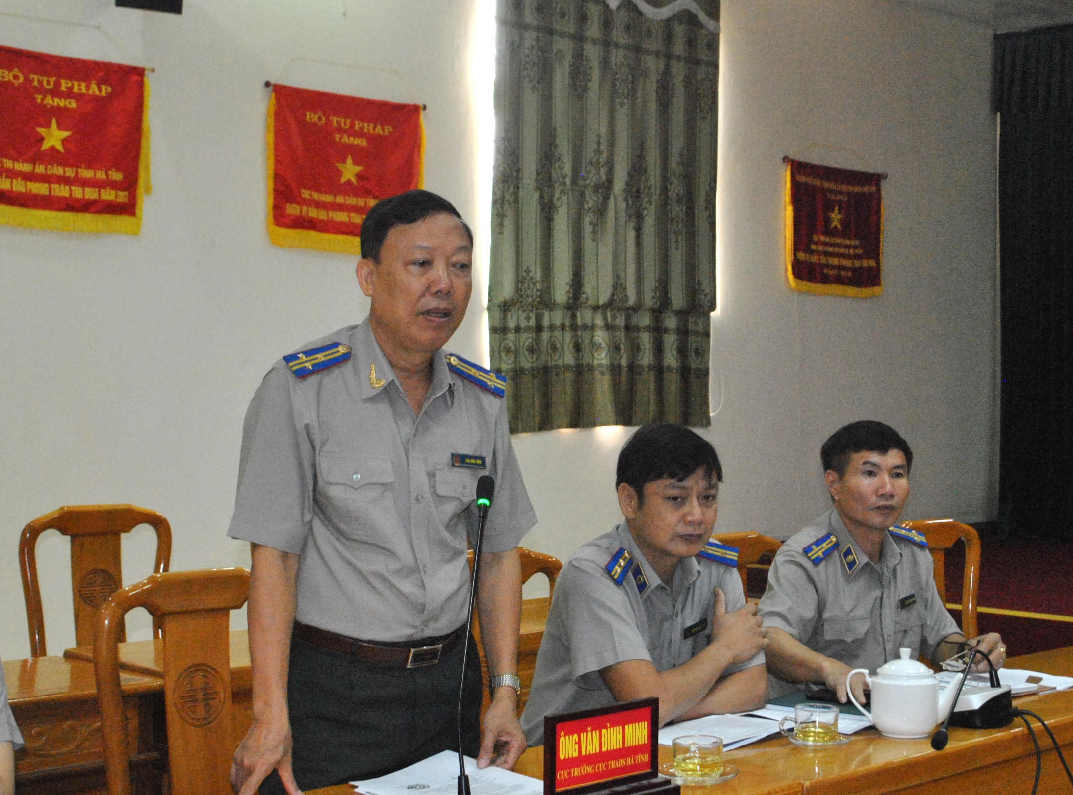 Ông Văn Đình Minh - Cục trưởng Cục THADS Hà Tĩnh báo cáo tại buổi làm việc với đoàn. Ảnh: PV |