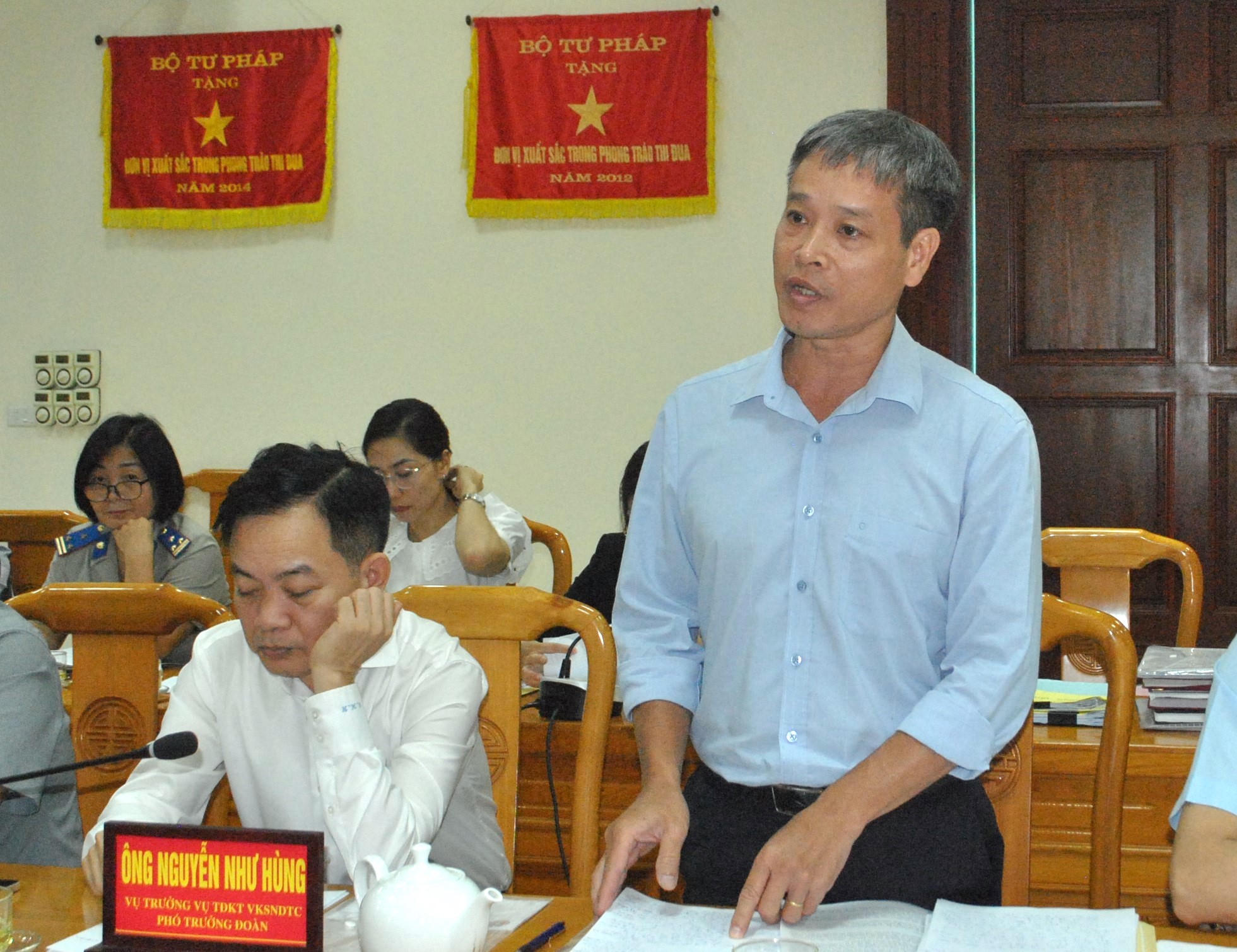 Ông Nguyễn Anh Tuấn – Phó Vụ trưởng Vụ Tổ chức cán bộ (Bộ Tư pháp) phát biểu tại buổi làm việc. Ảnh: PV |