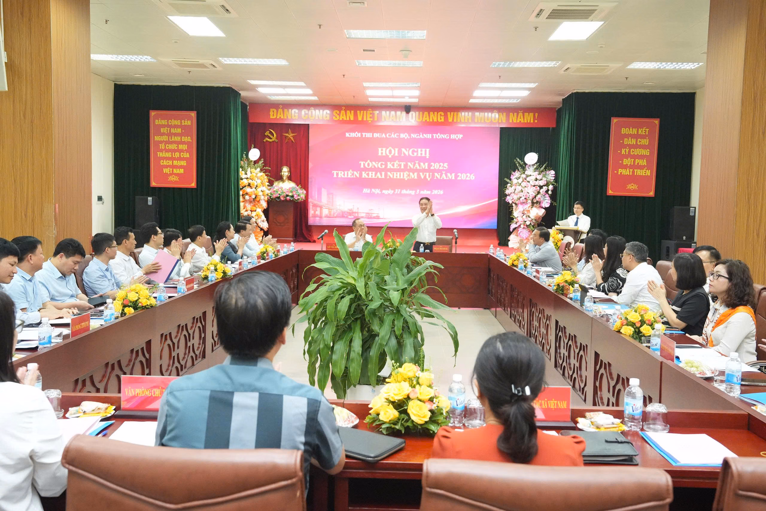 Khối thi đua các bộ, ngành tổng hợp đã phát động và ký giao ước thi đua năm 2026 với chủ đề: “Đoàn kết - Kỷ cương - Đổi mới - Hiệu quả; đẩy mạnh chuyển đổi số; nâng cao chất lượng tham mưu, thi đua nỗ lực phấn đấu hoàn thành thắng lợi các nhiệm vụ chính trị năm 2026”.