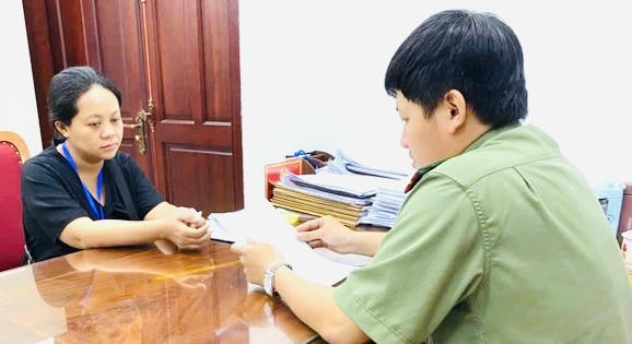 Đối tượng Nguyễn Thị Thu Trinh tại cơ quan công an. (Ảnh BNLĐ) |