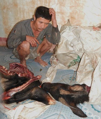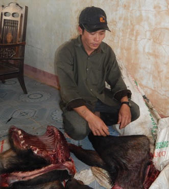 Tiếp đó, vào sáng 6/1/2015, tại đường mái cây Gọ khu vực Xai - Vực Trô, tổ kiểm lâm cơ động thuộc Hạt Kiểm lâm này phát hiện 3 đối tượng gồm: Lê Xuân Hiền (SN 1977), Nguyễn Văn Thực (SN 1977) và Nguyễn Quang (SN 1973) cùng trú tại thôn 3, xã Xuân Trạch, huyện Bố Trạch đang gùi 3 bao tải chứa thịt, da, xương, đầu, nội tạng và chân động vật đi từ trong rừng ra.