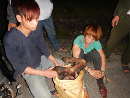 Kiểm lâm đã yêu cầu các đối tượng dừng lại để kiểm tra và phát hiện trong các bao tải có chứa các bộ phận của 13 cá thể cá thể voọc Hà Tĩnh gồm: phần đầu dính liền sườn, phần chi trước, phần chi sau và đuôi. Tất cả đã được cạo lông, sấy khô và có tổng trọng lượng là 30kg.