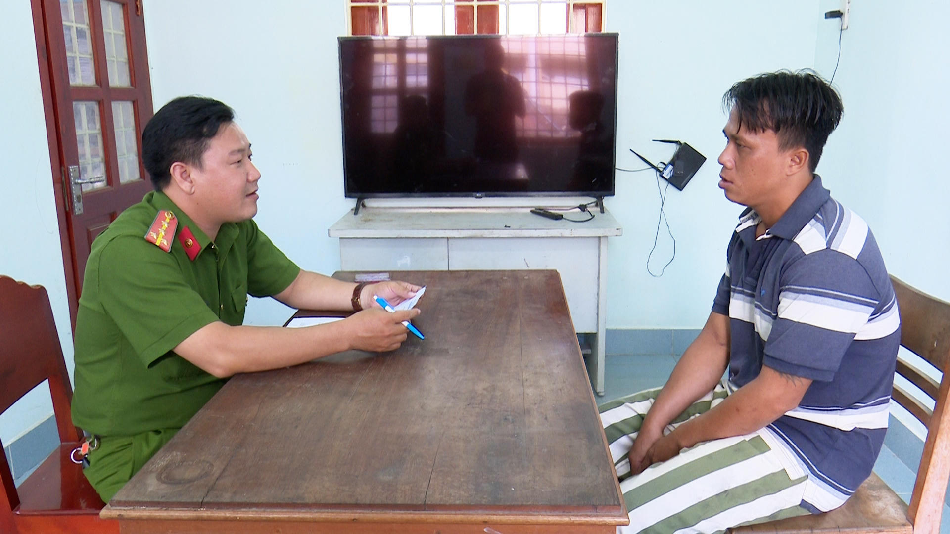 Cán bộ đang ghi lời khai bị can Nguyễn Văn Cường |